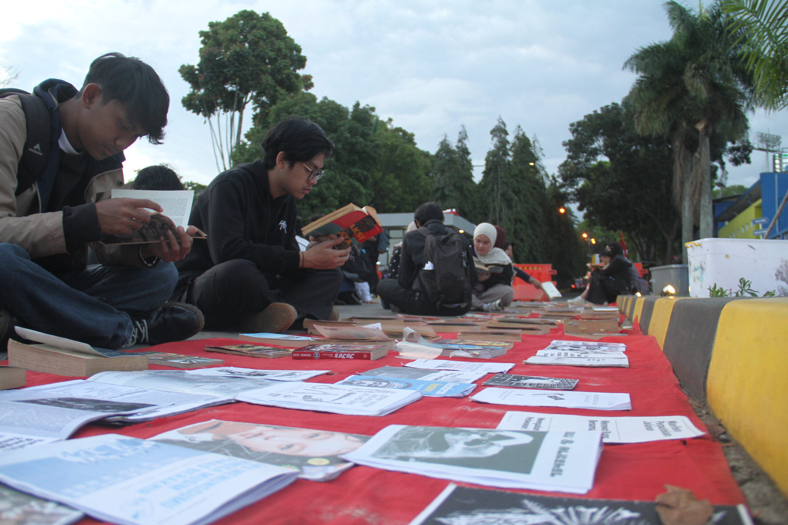 Students reading at Perpustakaan Jalanan, Jatinangor. (Warta Kema/Fotografi Warta Kema)