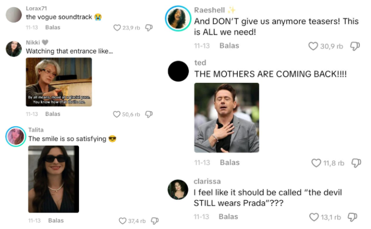 Fan comments in Tiktok about The Devil Wears Prada 2 teaser