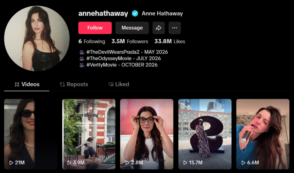 Anne Hathaway’s official TikTok account (Source: @annehathaway on TikTok)